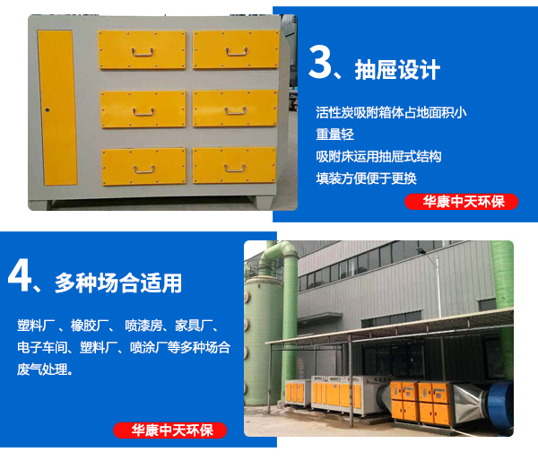 活性炭吸附設備是一種干法廢氣凈化設備,它利用活性炭的吸附作用處理工業(yè)廢氣。其核心部件——活性炭吸附單元具有科學設計結構,具有風阻小、方便(可在設備正常運行情況下)、標準化設計等優(yōu)點。活性炭空氣凈化器對于濃度低于1000mg/m3的廢氣凈化后排放滿足GB16297—1996《大氣污染物綜合排放標準》。